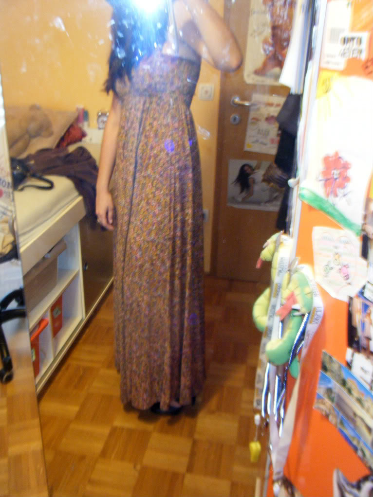 As promised, I’m shopping till dropping now that my exams are over. I’ve ordered loads of things on the internet already, but I just couldn’t resist this dress in H&M today as I went by, it was on sale anyways and I wanted a maxi dress for a while now. It’s perfect for summer time. With sandals or heels. And of course, I had to try it at home, with my new big hat, that my mom brought me and the black heels. It looks awesome I’d say. Already see myself wearing it in 2 weeks on Pag. My next mission: perfect swimsuits!