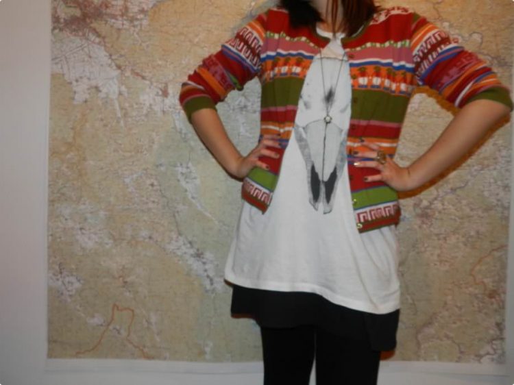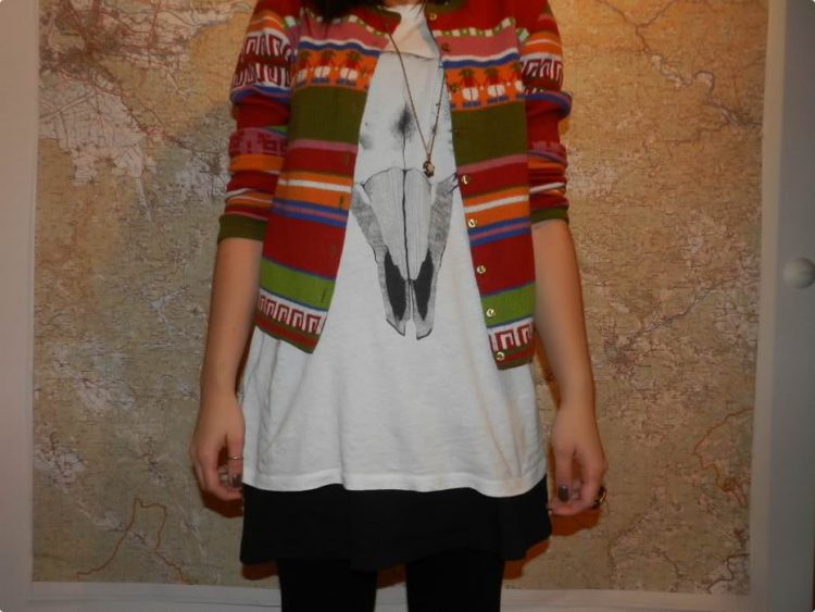 Dress, T Shirt, Leggings, Ring, Necklace – H&M, Cardigan – vintage, Nailpolish – Catrice Lost in Mud and Goldfinger