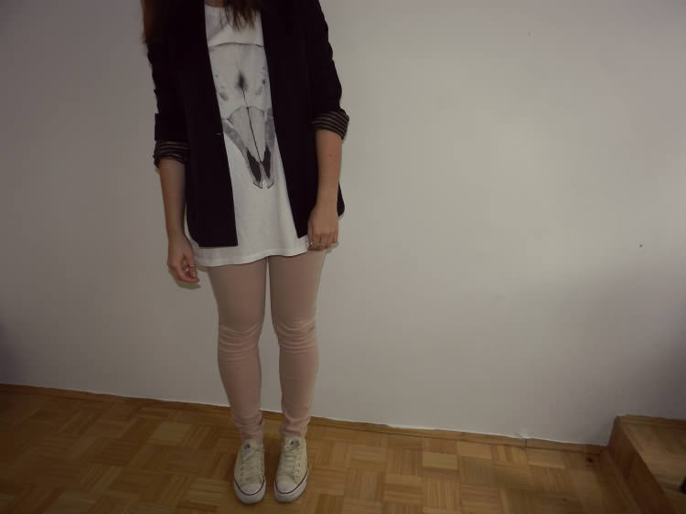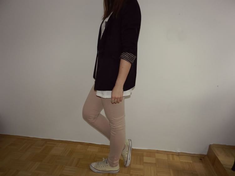 Pants – Pull & Bear, Tshirt, Blazer – H&M, Ring – Topshop, Sneakers – Converse