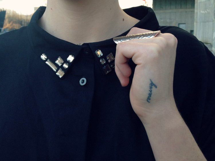 Now that the sun is finally showing itself more bravely, I’m gonna stop nagging you all with the constant weather complaining, I promise. Don’t really know what’s up with me and the spring, but as soon as it comes around, I am immediately cuffing pants up a notch. Jeans with a little twist, I love it. This shirt is slowly becoming my favorite. It’s comfy and slouchy, but it has that shiny effect on the neck I absolutely adore. A little bling never hurts. right?
