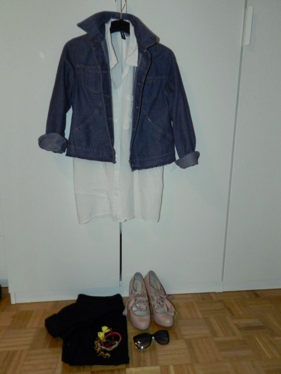 This one is on the smarter side, with black pants and high heels, but still spring-oriented with white shirt and jeans jacket. I am becoming obsessed with cuffed pants, but they look so much better when rolled up a bit. Adding the colorful bracelets to make it a more playful and a tad girly. It’s warm enough now, to walk around even without the jacket, but just in case there’s a cloudy day.