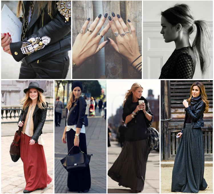 Those who follow me on Instagram already saw bits of my amazing Saturday, but more about it tomorrow here on the blog with the full report and also outfit pics, yaay. Today is time for getting inspired. I’m still in the black zone, but slowly getting the dressy mood back. And another thing I discovered this past weekend are maxi skirts in winter! I’m usually more of a short skirt kind of girl, but seeing how good it looks with a jacket and some boots, I think I’ll try it myself very soon. Now I’m off to work and I wish you all a very lovely week!