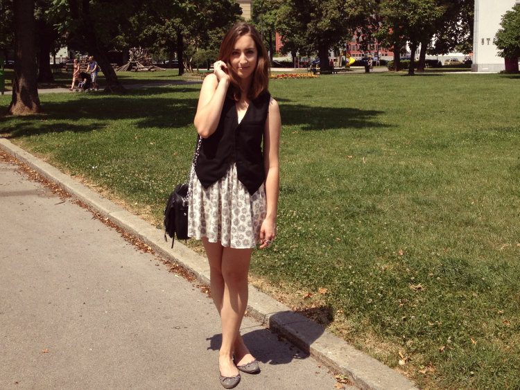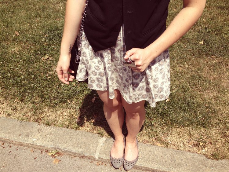 Dress – Topshop, Flats – Zara, Bag, vest – second hand, Rings – Primark, LuShae Jewellry, ebay, mom’s